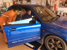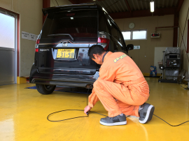 そして隣の検査室を除くとこちらもベテラン検査員の山下検査員が車検整備が終わった車を