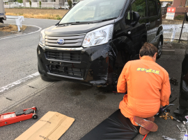 画像のお車は足回りを損傷されたお客様の修理のご依頼です。