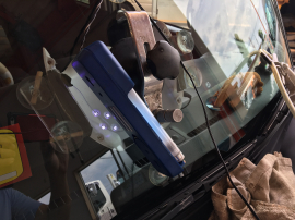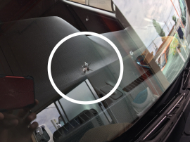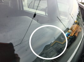 ん?フロントガラスをふと見ると飛び石によるひび割れを発見。。
