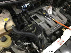 *画像はV6エンジンの点火プラグの交換作業です。車検を受けていただいた後のメンテナンスでご入庫いただきました。